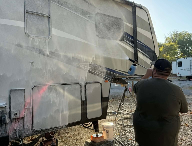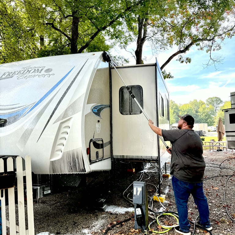 Our soft washing services are designed for campers and RVs, ensuring a safe and gentle approach that minimizes the risk of damage or water intrusion.