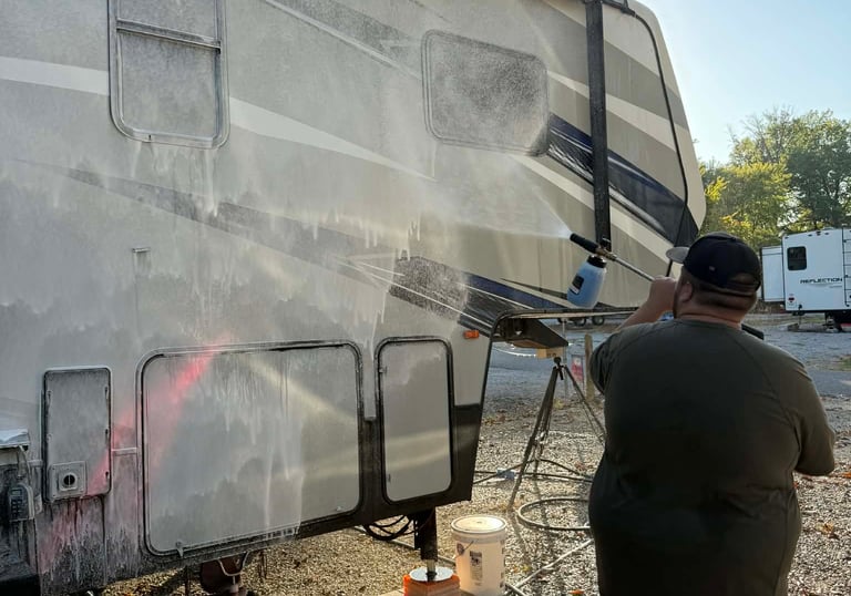 Our soft washing services are designed for campers and RVs, ensuring a safe and gentle approach that minimizes the risk of damage or water intrusion.